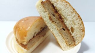 【商品紹介】ファミリーマートの商品「どかっと満足パン(メンチカツ)」を食べてみました。ふんわりとした食感のバンズに、ジュ...