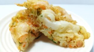 【商品紹介】ローソンの商品「まちかど厨房 海鮮かき揚げ」を食べてみました。えびといかを華やかにトッピングした、年末にもぴ...