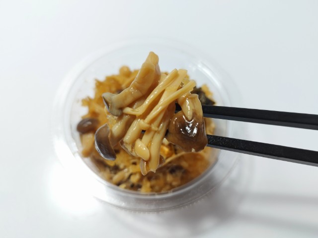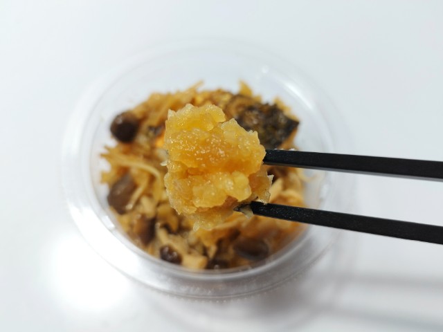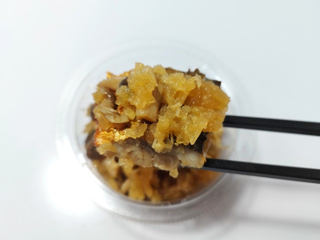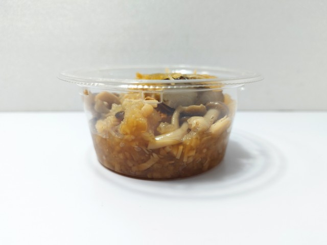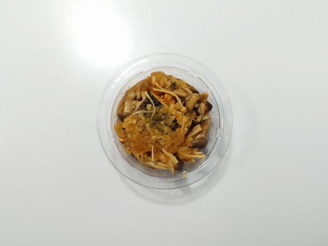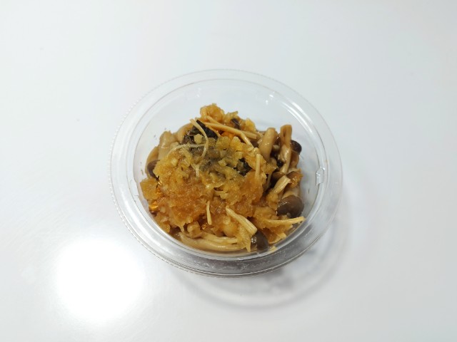 おろしぽん酢で和えた焼きさばです。以前の購入が2024年9月28日発売だったので、1年以上経っていますが、価格は変わっていません。そんな直火焼きさばのおろしぽん酢ですが、焼きさばはさばの旨味と身の柔らかさ、ほどよい脂があって、食べ出すと箸が止まらなくなる美味しさです。粗おろし大根はさっぱりとした味わいとほのかな甘味、きのこはぶなしめじとえのきだけが使われていて、味や食感のアクセントになっています。ポイントはやはりぽん酢で、ゆずの香りとやさしい酸味が加わることで、魚の臭みを感じさせず、最後のひと口まで美味しく食べられます。カップデリなので内容量は多くはありませんが、おつまみやおかずをもう一品追加したい時にピッタリの商品です。ぜひさばのおろしぽん酢を食べてみてください。