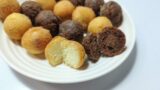 ダイスチョコ入りチョコクッキーと、チョコクリームを包んだチョコ風味のパンを合わせて焼き上げ、粉糖をかけました。