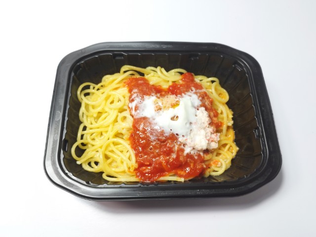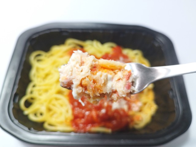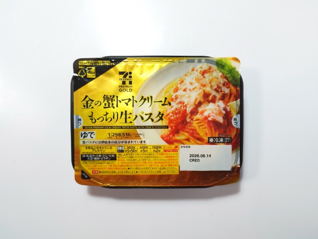 セブンイレブンの今週の新商品「7PG 金の蟹トマトクリーム生パスタ」を食べてみました。
