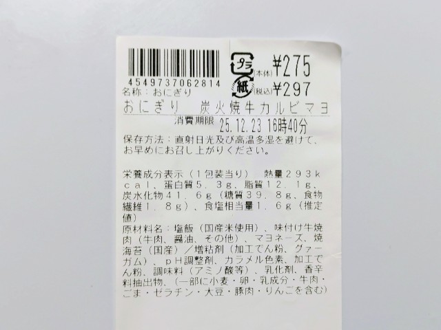 以前に購入した商品は2024年3月26日発売で商品名がまちかど厨房 おにぎり 直火焼牛カルビマヨでした↓