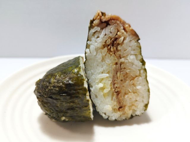 牛カルビマヨネーズが入ったおにぎりです。以前の購入が2024年3月26日発売だったので、1年以上経っていますが、価格が235円(税込)から297円(税込)に商品名がまちかど厨房 おにぎり 直火焼牛カルビマヨからまちかど厨房 おにぎり 炭火焼牛カルビマヨへと変わっています。そんなおにぎりですが、牛カルビ牛の旨味甘辛いタレの味わいで、ご飯が進む一品になっています。一緒に入っているマヨネーズがポイントで、マヨネーズのなめらかな味わいが加わる事で、牛カルビの美味しさがより引き立っています。大きさは普通のおにぎりサイズで、小腹が空いた時主食にあと一品追加したい時にピッタリです。ぜひ炭火焼牛カルビマヨおにぎりを食べてみて下さい。