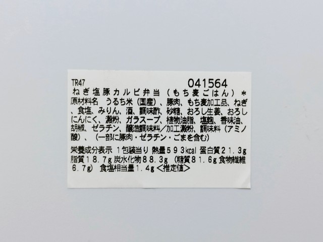 豚カルビのお弁当です。以前の購入が2025年6月24日発売だったので、約8ヶ月近く経っていますが、価格が498円(税込537.84円)から520円(税込561.60円)へと変わっています。ほぼ通年販売の商品なので、店頭で見かけたり、食べた事がある方も多いと思います。今回、新商品ではありますが、正確にはリニューアルというのが正しいのかもしれません。そんな豚カルビ弁当ですが、豚カルビは豚の旨味とジューシーな脂があって、ご飯が進む一品になっています。味付けである塩だれはほどよい塩味とにんにくの味わい、ごま油の風味があって、豚カルビの美味しさをさらに引き立てています。もち麦の食感も心地よく、最後のひと口まで飽きることなく食べられます。内容量は1食分にちょうどよく、お腹も満たされます。ぜひねぎ塩豚カルビ弁当を食べてみてください。