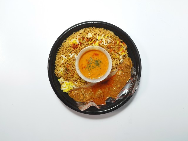 南インドカレーの名店「エリックサウス」監修の商品です。インド米(バスマティライス)を使用した本格的なビリヤニと、2種のカレーを一緒に楽しめます。