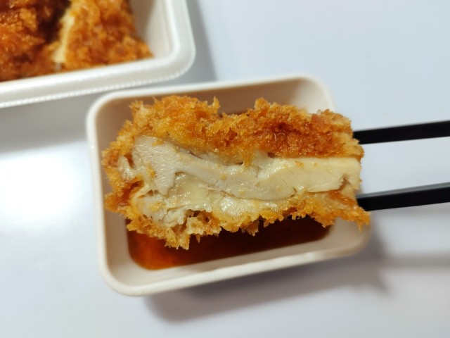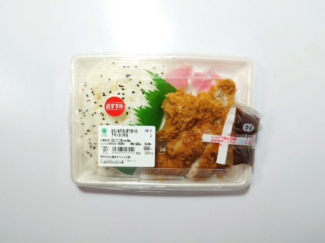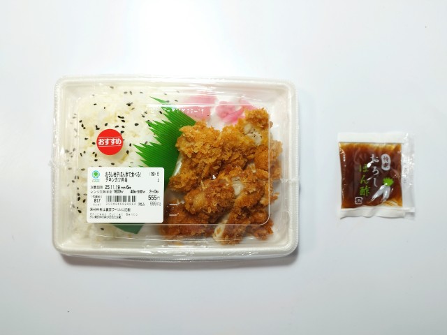 おろしポン酢で食べるチキンカツ弁当です。以前の購入が2025年5月20日発売だったので、約半年近く経っていますが、価格が554円(税込598円)から555円(税込599円)に変わっています。そんなチキンカツ弁当ですが、おろしポン酢は柚子の香りとポン酢の酸味が効いていて、揚げ物をさっぱりと食べられます。チキンカツはふた口サイズくらいに切られていて、薄めの衣に包まれた鶏肉は柔らかく、ご飯が止まらなくなる美味しさです。揚げ物を使ったお弁当はどうしても油の重さを感じますが、この商品はおろしポン酢でさっぱりと食べられるので、最後まで美味しく食べられると思います。内容量は1食分にちょうどよく、お腹も満たされます。ぜひおろし柚子ぽん酢で食べる!チキンカツ弁当を食べてみて下さい。