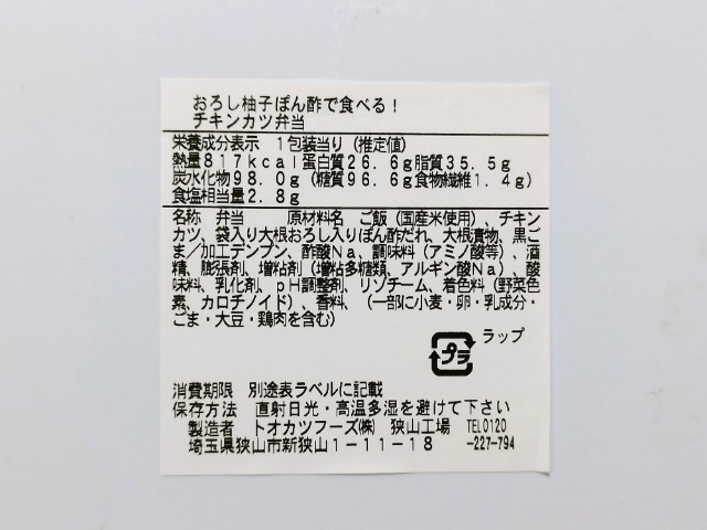ファミリーマートの商品「おろし柚子ぽん酢で食べる!チキンカツ弁当」を食べてみました。