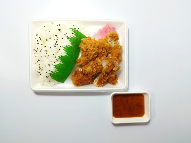 ゆずの果汁が入った爽やかな香りが特徴のおろしポン酢で食べるチキンカツ弁当です。チキンカツは鶏もも肉を塩こうじなどに漬け込んだジューシーな仕立てです。※宮崎県、鹿児島県では取り扱いがございません。