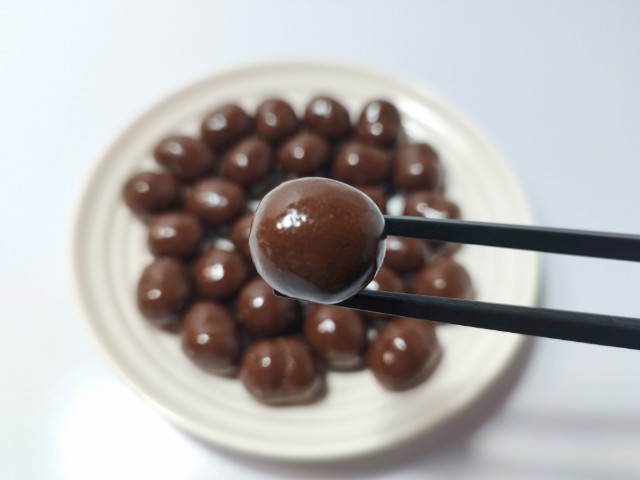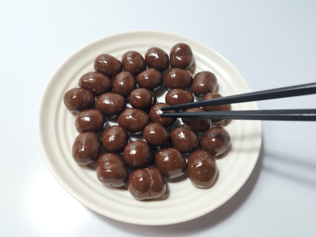 いつもはそのまま食べますが、今回は箸を使います。