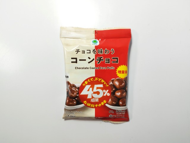 ファミリーマートの今週の新商品「【なぜか45%増量作戦】チョコを味わうコーンチョコ」を食べてみました。
