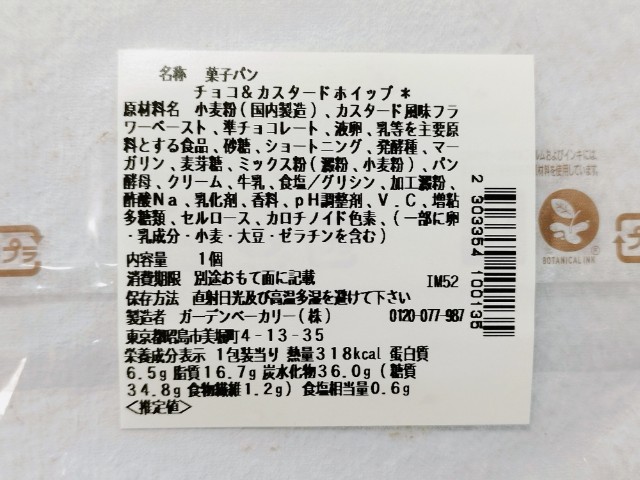 熱量:318kcal、たんぱく質:6.5g、脂質:16.7g、炭水化物:36.0g(糖質:34.8g、食物繊維:1.2g)、食塩相当量:0.6g