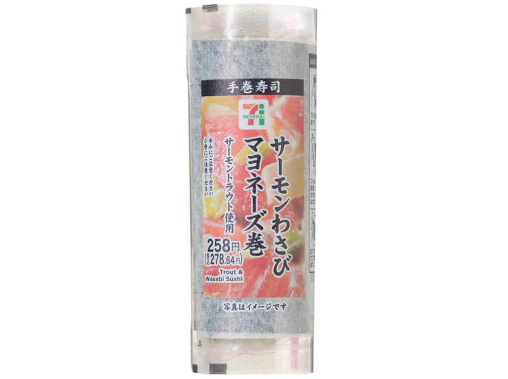セブンイレブンの商品「手巻寿司 サーモンわさびマヨネーズ巻」を食べてみました。