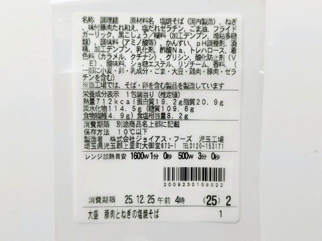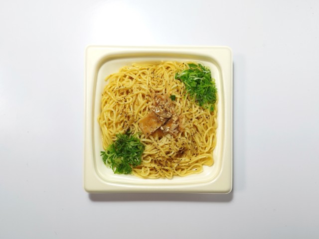 豚肉とねぎがのった大盛の塩焼そばです。以前の購入が2025年7月1日発売だったので、約5ヶ月以上経っていますが、価格は変わっていません。そんな塩焼そばですが、塩だれの旨味と牛脂のコク、にんにくの風味があって、濃厚な味わいながらも後味はさっぱりとしています。トッピングにはねぎと豚肉がのっていて、豚肉のジューシーな味わいとねぎのシャキシャキ食感が塩焼そばの美味しさをさらに引き立てています。ポイントは黒胡椒で、ピリッとした辛味が味のアクセントになっています。今回はそのまま食べましたが、マヨネーズやラー油を加えて、味変しながら食べても美味しいと思います。内容量は大盛というだけあって、ガッツリ食べたい方にはピッタリだと思います。ぜひ大盛の豚肉とねぎの塩焼そばを食べてみてください。