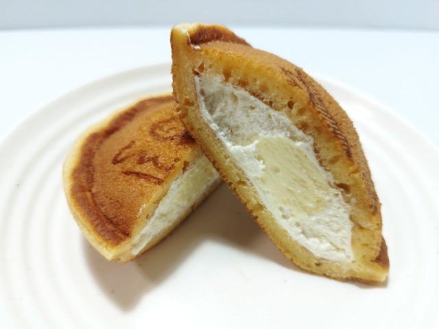 Milkとコラボしたどらもっちです。以前の購入が2024年7月2日発売だったので、1年以上経っていますが、価格が235円(税込)から246円(税込)へと変わっています。そんなMILKどらもっちですが、生地はもちもちとした食感と香ばしい味わいで、これだけでも美味しく食べ進められます。中には生クリームとミルクソースが入っていて、生クリームはなめらかな食感とミルクの風味、ミルクソースはとろりとした食感と練乳の甘味で、相性抜群の組み合わせになっています。大きさは普通のどら焼きサイズで、おやつや小腹が空いた時にオススメです。ぜひMILKどらもっちを食べてみて下さい。