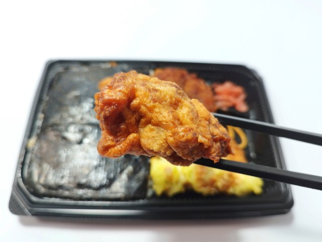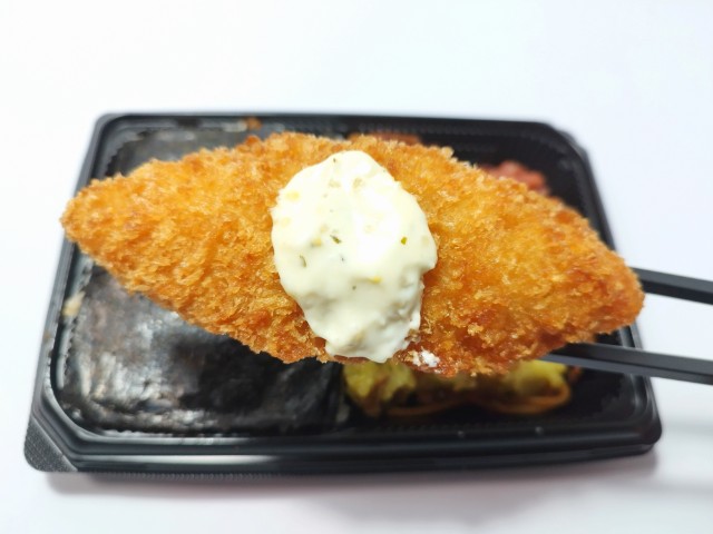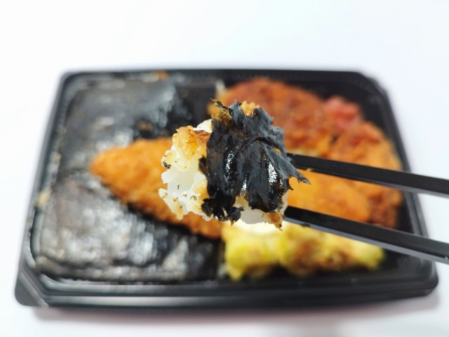 4種類のおかずがのった海苔弁当です。以前の購入が2024年11月5日発売だったので、1年以上経っていますが、価格が460円(税込496.80円)から598円(税込645.84円)に商品名がおかかたっぷり 海苔弁当から4種おかずの海苔弁当へと変わっています。以前からかなり期間が空いているように見えますが、セブンイレブンの海苔弁当や唐揚げ弁当は商品名を始め、発売日や価格、惣菜の構成などが地域によってかなり異なる為、今回のように幅広い地域での海苔弁当で最も近かったものとして、おかかたっぷり 海苔弁当を選んでいます。ちなみにこの期間にはおかかたっぷり 明太のり弁当(2025年8月5日発売)や炭火焼豚バラの海苔弁当(2025年12月6日発売)などもありましたが、前者は販売地域が狭く、後者は豚バラメインのお弁当なので、別物としています。と話がズレましたが、そんな4種おかずの海苔弁当ですが、白身フライはタルタルソースの酸味と白身魚の味わい、ちくわ磯辺揚げはちくわの食感とあおさの風味、コロッケはソースの甘味とじゃがいもの味わい、唐揚げは鶏の旨味とジューシーな肉質を楽しむ事が出来ます。ポイントはおかかと海苔で、おかかの旨味と海苔の味わいで、ご飯がどんどんと進みます。内容量は1食分にちょうどよく、お腹も満たされます。ぜひ4種おかずの海苔弁当を食べてみてください。