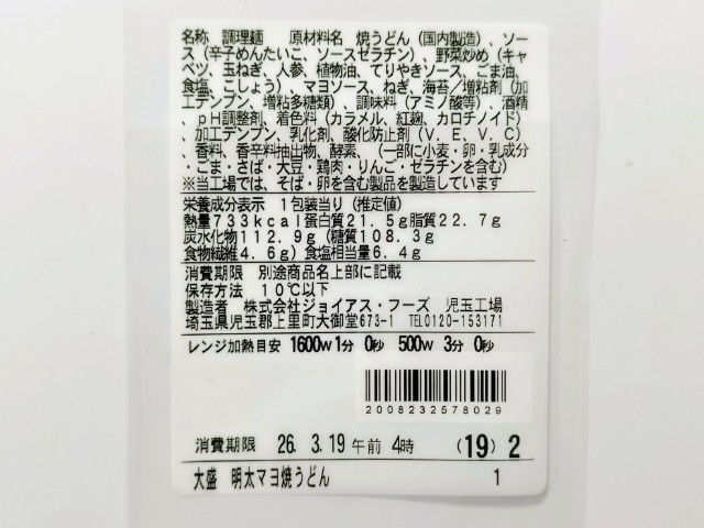 以前に購入した商品は2025年2月4日発売で商品名が【関東・東海・関西】大盛 明太マヨ焼うどんでした↓