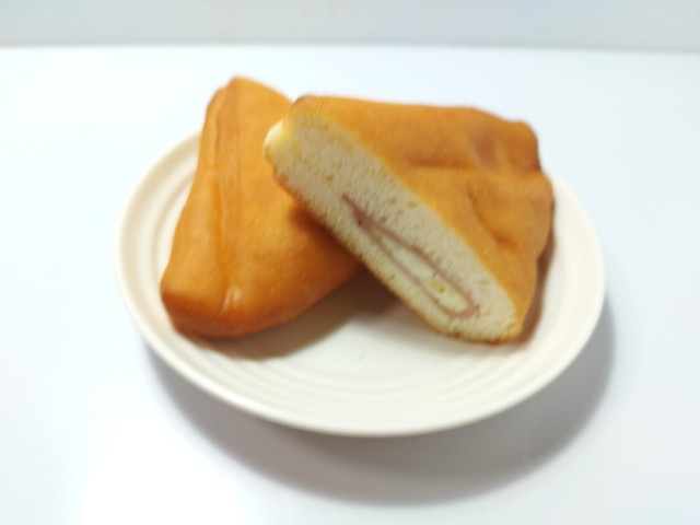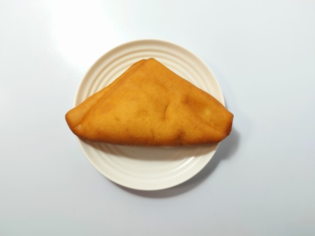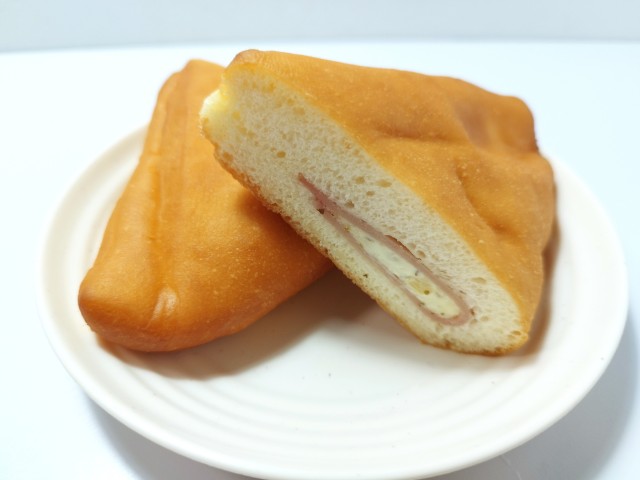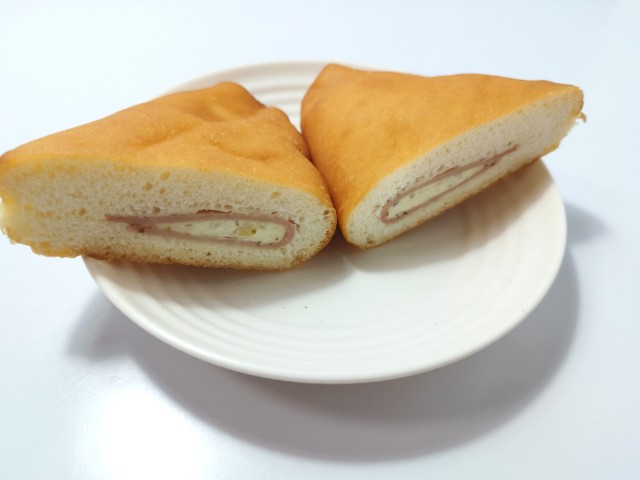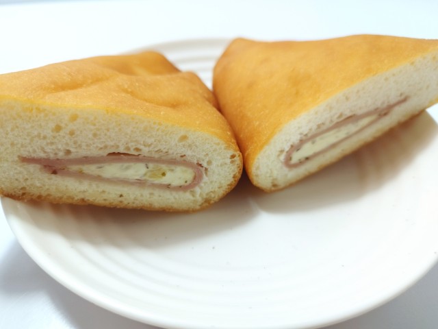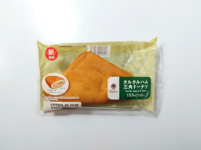 ハムとタルタルソースを包んだドーナツです。以前の購入が2023年10月24日発売だったので、1年以上経っていますが、価格が147円(税込158円)から153円(税込165円)に商品名が三角ハムドーナツ(タルタルソース)からタルタルハム三角ドーナツへと変わっています。そんな三角ドーナツですが、生地はしっとりとした食感と小麦の風味で、安定の美味しさです。ハムとタルタルソースはハムの塩味とタルタルソースの旨味があって、生地とのバランスも良いです。ドーナツですが油のしつこさがないので、かなり食べやすいと思います。大きさは普通の惣菜パンくらいで、おやつや小腹が空いた時にピッタリです。ぜひタルタルハム三角ドーナツを食べてみて下さい。