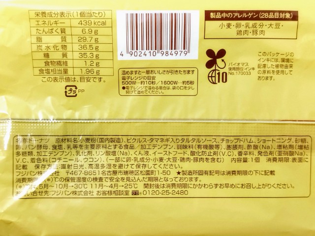 以前に購入した商品は2023年10月24日発売で商品名が三角ハムドーナツ(タルタルソース)でした↓