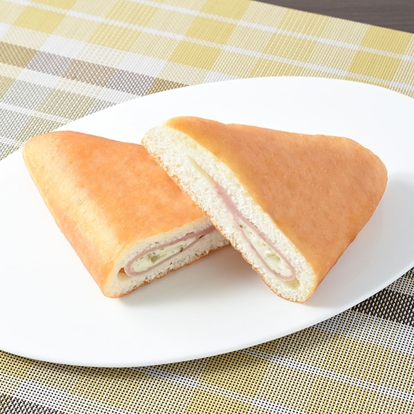 ふんわりとした食感のドーナツ生地に1枚ハムとタルタルソースを包んだ惣菜パンです。