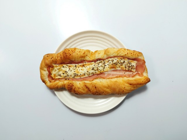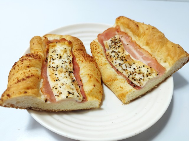 ベーコンとチーズを使ったデニッシュです。以前の購入が2025年8月26日発売だったので、約半年以上経っていますが、価格は変わっていません。そんなベーコン&チーズデニッシュですが、生地はしっとりした食感と歯切れの良さ、チーズの風味があって、間違いのない美味しさです。トッピングにベーコンとチーズ入りクリーム、ブラックペッパーが使われていて、ベーコンの塩味とチーズの酸味、ブラックペッパーのピリッとした辛味で、デニッシュ生地とのバランスも良いです。大きさは普通の惣菜パンくらいで、小腹が空いた時や主食にあと一品追加したい時にピッタリです。ぜひベーコン&チーズデニッシュを食べてみてください。