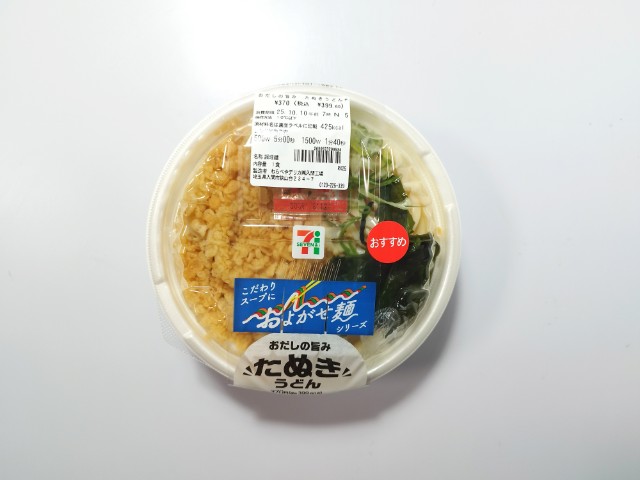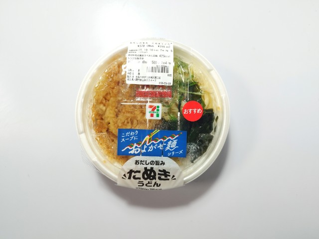 セブンイレブンの商品「おだしの旨み たぬきうどん」を食べてみました。
