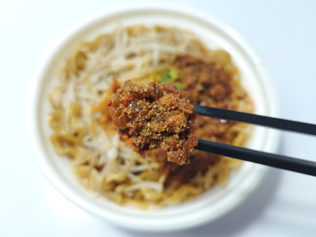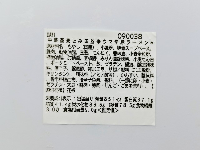 とみ田監修のウマ辛豚ラーメンです。以前の購入が2025年3月5日発売だったので、約1年近く経っていますが、価格は変わっていません。そんなウマ辛豚ラーメンですが、スープは豚の旨味と醤油の風味に唐辛子の辛味があって、クセになってしまう美味しさです。極太麺はワシワシとした食感と小麦の風味で、濃厚スープにも負けていません。具材には辛豚挽肉炒めや辛背脂ニンニク、もやし、ねぎなどがのっていて、それぞれの味や食感を楽しめます。特に辛豚挽肉炒めはたっぷりとのっていて、ジューシーな味わいとほどよい辛味があって、麺にもスープにもよく合います。ちなみに今回は撮影の為に花椒を先にかけてますが、本来は途中で花椒をかけて痺れを楽しむといった感じだと思います。内容量は1食分にちょうどよく、お腹も満たされます。ぜひウマ辛豚ラーメンを食べてみてください。