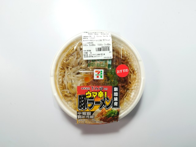 セブンイレブンの今週の新商品「とみ田監修 ウマ辛豚ラーメン」を食べてみました。