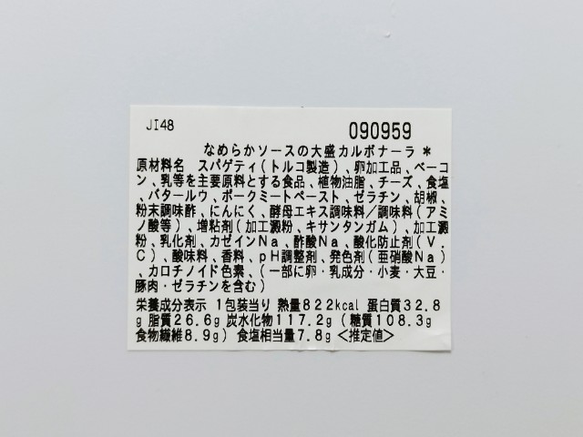 以前に購入した商品は2025年7月30日発売で商品名がソースたっぷり大盛カルボナーラでした↓