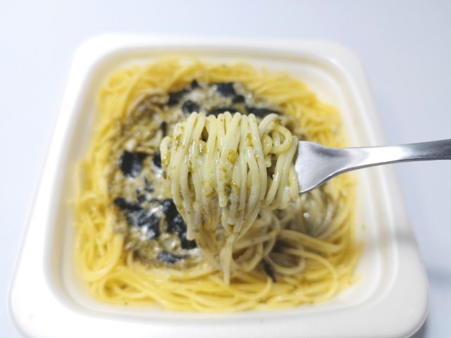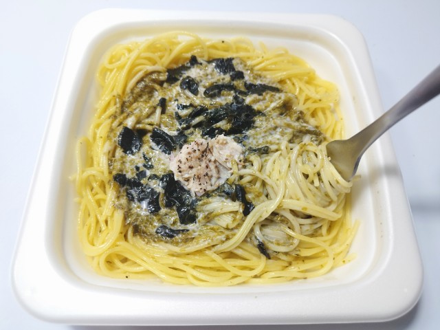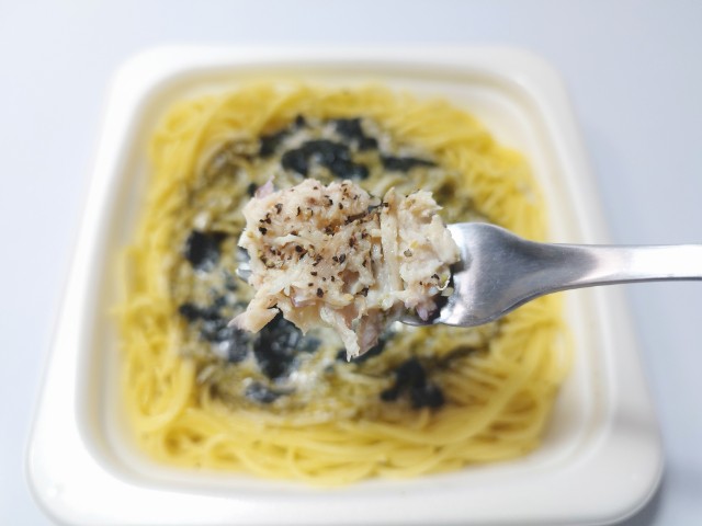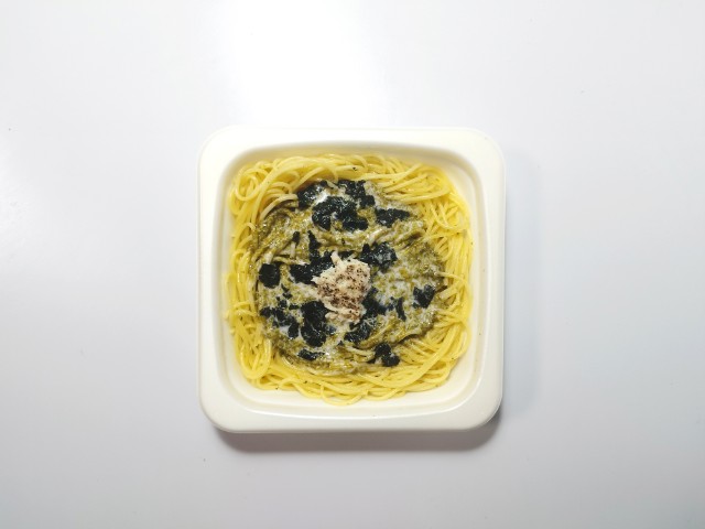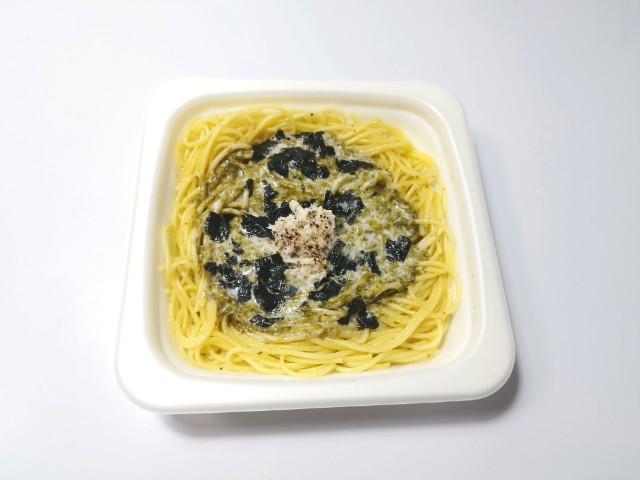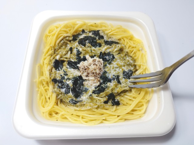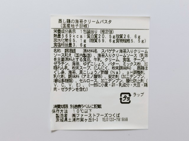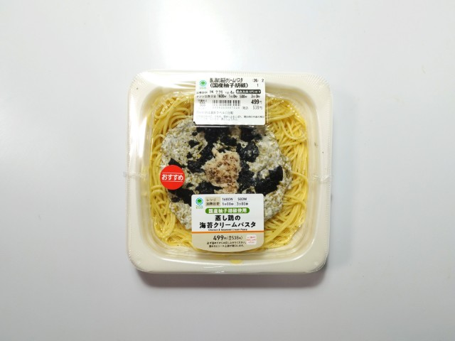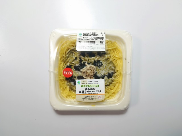 ファミリーマートの今週の新商品「蒸し鶏の海苔クリームパスタ」を食べてみました。