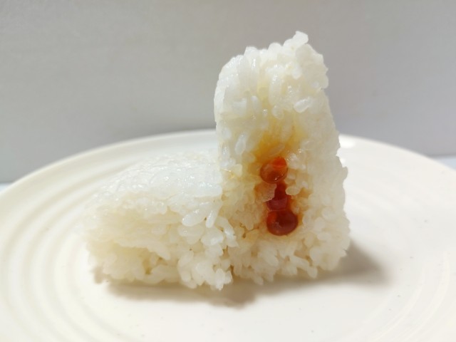 厳選したいくらを、醤油や昆布だしなどに漬け込んで中具にしたおむすびです。