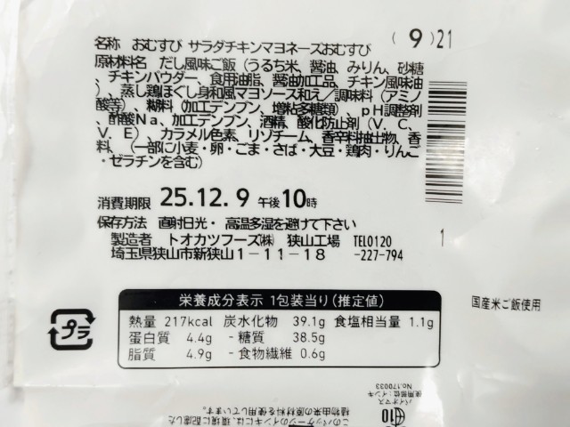 ファミリーマートの商品「サラダチキンマヨネーズおむすび」を食べてみました。
