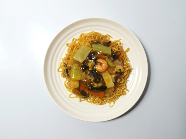 五目あんかけ焼そばを美味しくいただきますっ!!