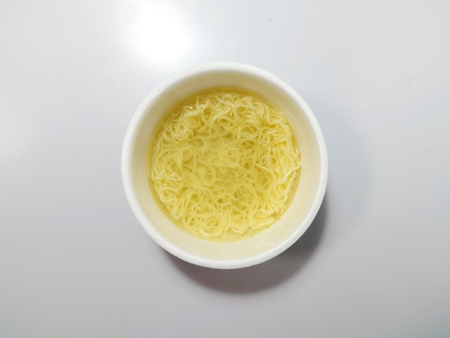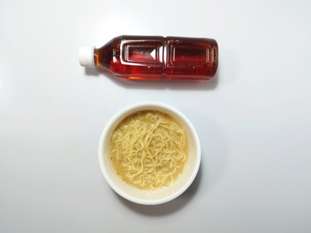 液体スープと粉末スープを入れて、よくかき混ぜたら完成です。