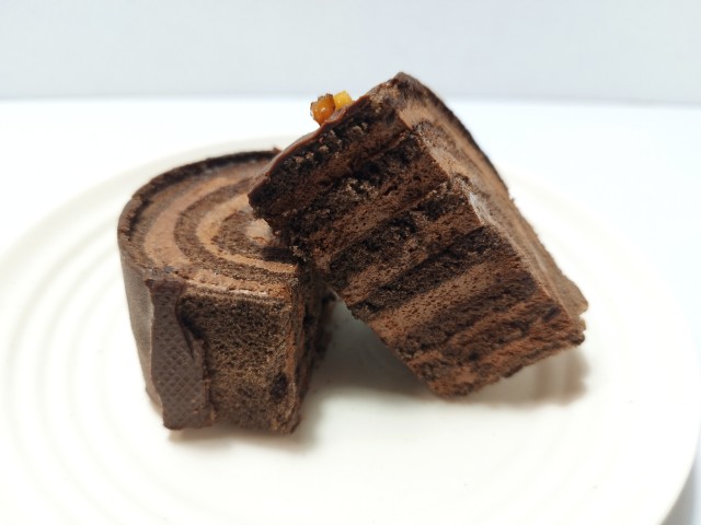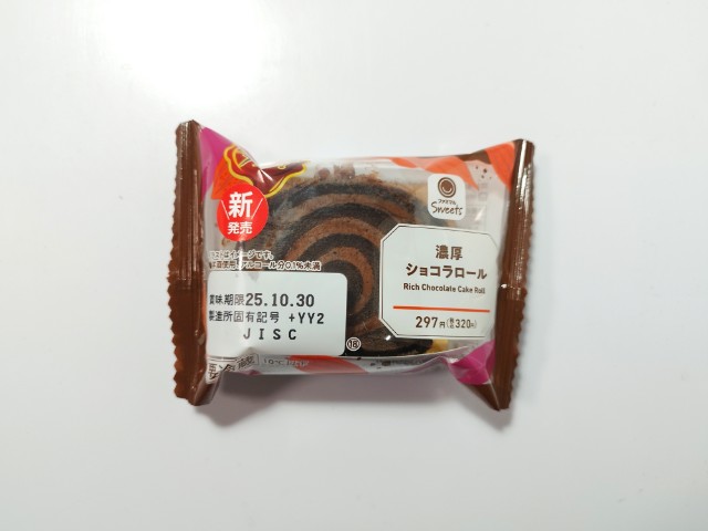 チョコをたっぷり使ったロールケーキです。以前の購入が2025年4月1日発売なので約7ヶ月近く経っていますが、価格が276円(税込298円)から297円(税込320円)に商品名が濃厚ショコラロールから【ファミマがチョコだらけ!】濃厚ショコラロールへと変わっています。ファミリーマートでは10月28日よりひとくちで3度しあわせ「ファミマがチョコだらけ!」開催を開催していて、今回の商品も対象商品の一つになっています。そんなショコラロールですが、外のチョココーティングはチョコの甘味とパリッと食感、中のココア生地はココアの風味とくちどけの良さで、ハマってしまう美味しさです。生地と一緒に巻かれているチョコクリームはなめらかな食感とチョコの風味、チョコソースはとろりとした食感とチョコの味わいがあって、ココア生地との相性抜群です。しっかりとチョコを堪能出来るスイーツいった感じで、かなり満足度が高い商品だと思います。大きさは普通のロールケーキくらいで、おやつや食後のデザートにピッタリです。ぜひ濃厚ショコラロールを食べてみて下さい。