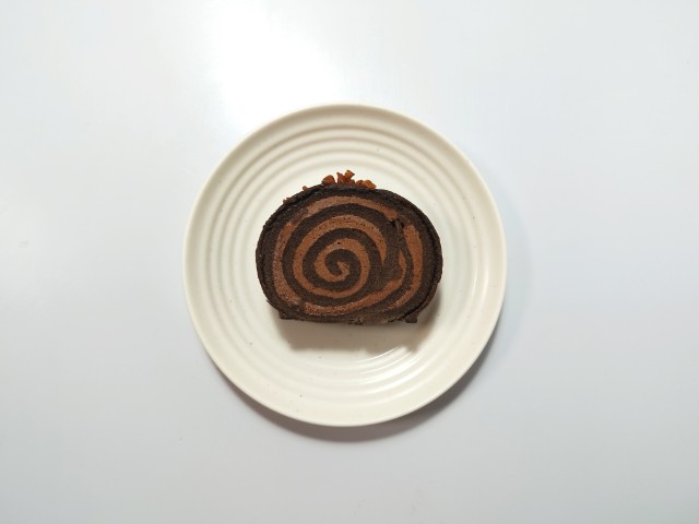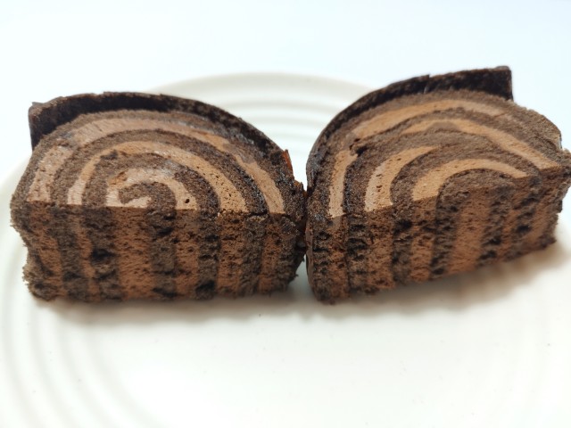 チョコたっぷりのロールケーキです。