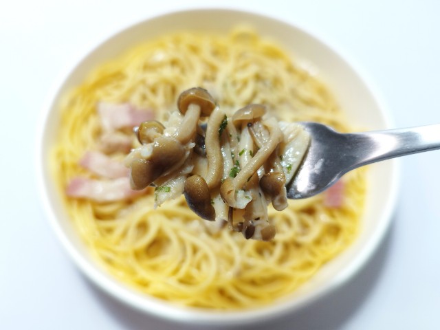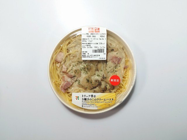 セブンイレブンの今週の新商品「トリュフ香る 3種きのこのクリームパスタ」を食べてみました。