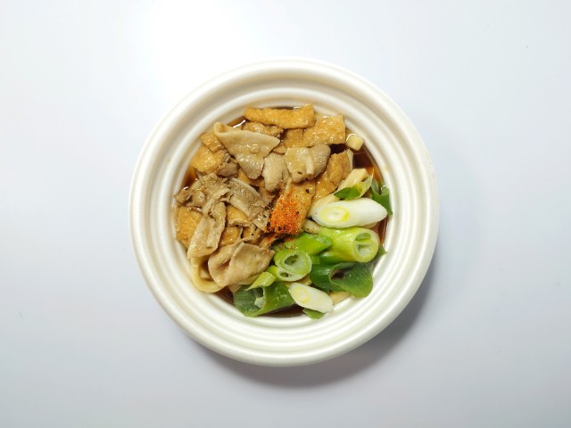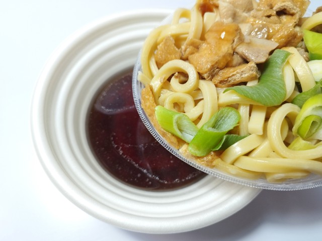 セパレートタイプなので、うどんと具材をつゆに入れます。
