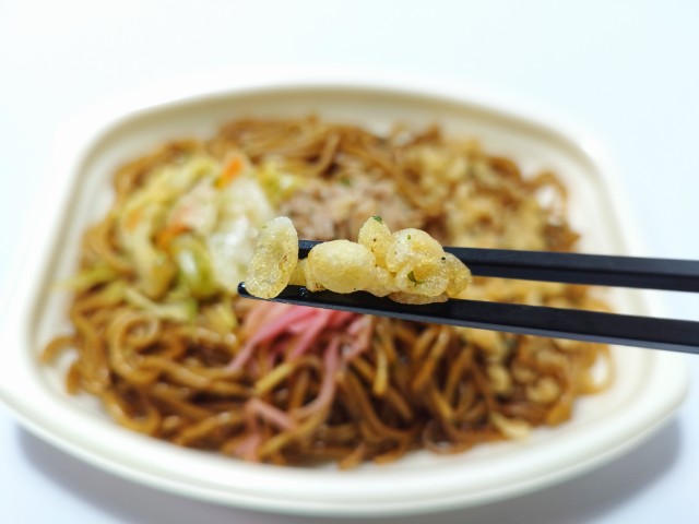 ファミリーマートの今週の新商品「揚玉入り 特製ソース焼そば」を食べてみました。