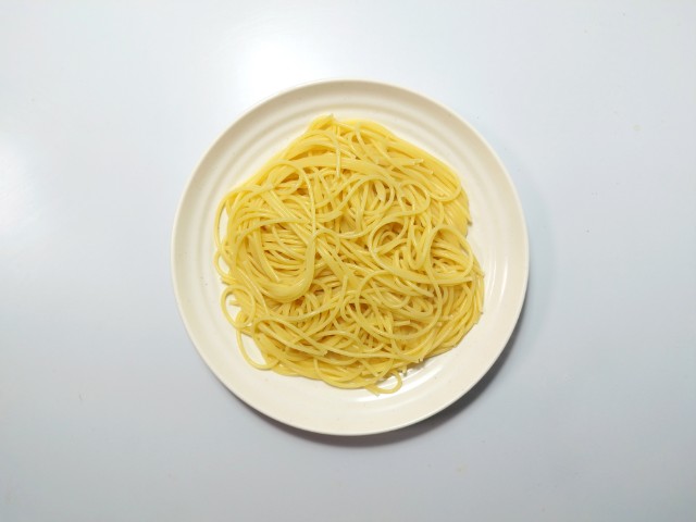 ミートソースだけだと厳しいので、スパゲッティも用意しました。