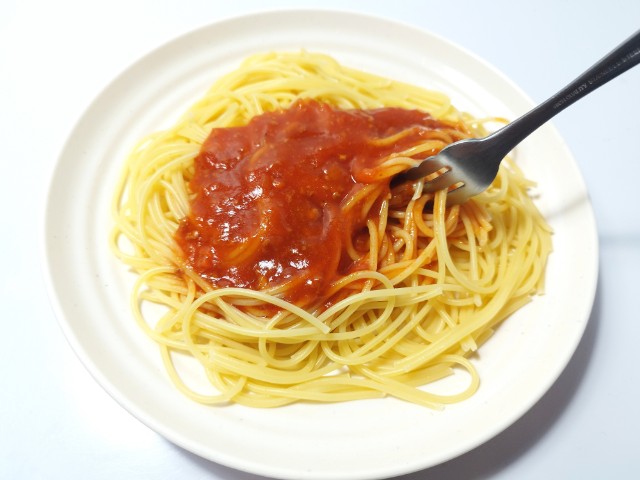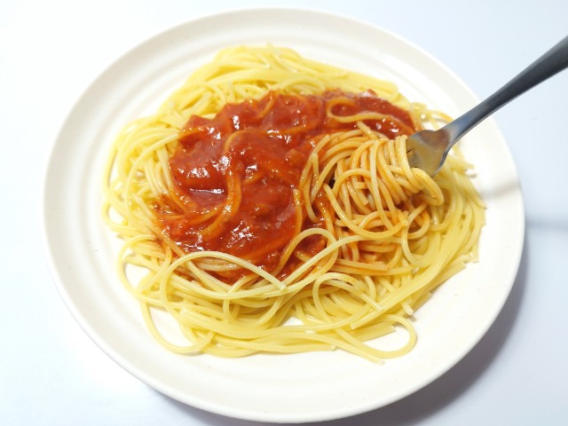 ミートソースです。以前の購入が2024年12月3日だったので、約1年近く経っていますが、価格が148円(税込159.84円)から158円(税込170.64円)へと変わっています。そんなミートソースパスタですが、ミートソースは2人前220g入っていて、今回は約半分の1人前110gを使っています。スパゲッティは400g(100g×4)入っていたので100g(1人前)を茹でています。ミートソース2人前が158円(税込170.64円)でスパゲッティ4人前が198円(税込213.84円)なのでミートソース約86円とスパゲッティ約54円で1人前が税込140円で出来ます。一応、セブンイレブン公式のスパゲッティの商品説明だと100gを1人前としているので、そこに合わせて今回は作ってあります。実際に食べてみると、ミートソースは肉の旨味と野菜の味わい、トマトの酸味があって、間違いのない美味しさです。パスタは個人の茹で加減にもよりますが、ほどよい硬さで美味しいです。内容量は1食分にちょうどよく、お腹も満たされます。ぜひミートソースパスタを食べてみてください。