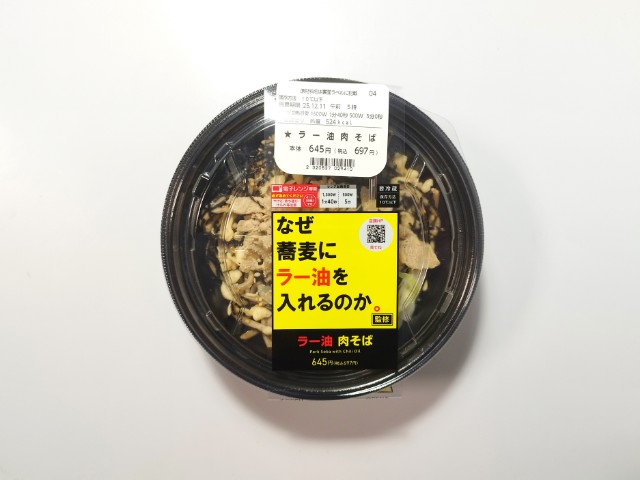 ローソンの商品「なぜ蕎麦にラー油を入れるのか。監修 ラー油肉そば」を食べてみました。