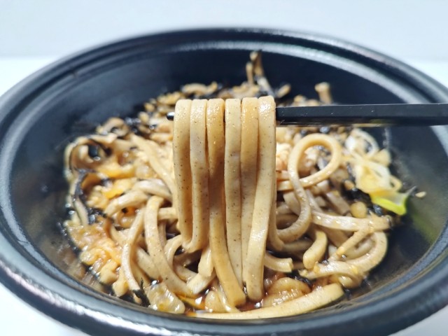 なぜ蕎麦にラー油を入れるのか。監修ラー油肉そばです。以前の購入が2024年12月10日発売だったので、約1年近く経っていますが、価格は変わっていません。そんなラー油肉そばですが、つゆ醤油の風味やさしい甘味ラー油のピリリとした辛味があって、間違いのない美味しさです。極太のそばしっかりとした食感そばの風味があって、中華麺でいうところのワシワシ麺といった印象で、食べ応えがあります。具材には豚肉玉ねぎ煮胡麻刻み海苔などがあって、それぞれの味や食感を楽しめます。内容量は1食分にちょうどよく、お腹も満たされます。ぜひラー油肉そばを食べてみて下さい。