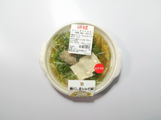セブンイレブンの今週の新商品「鰹だし香るねぎ鍋」を食べてみました。