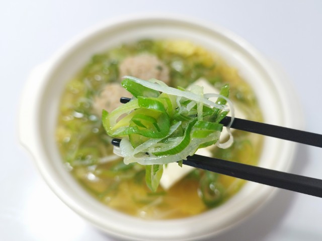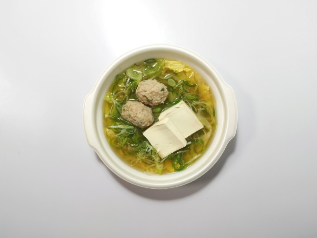 鰹だしをベースに鶏肉の旨味がしっかりと効いたスープに、シャキシャキのねぎの食感を楽しめる、優しい味わいのカロリー控えめな鍋です。