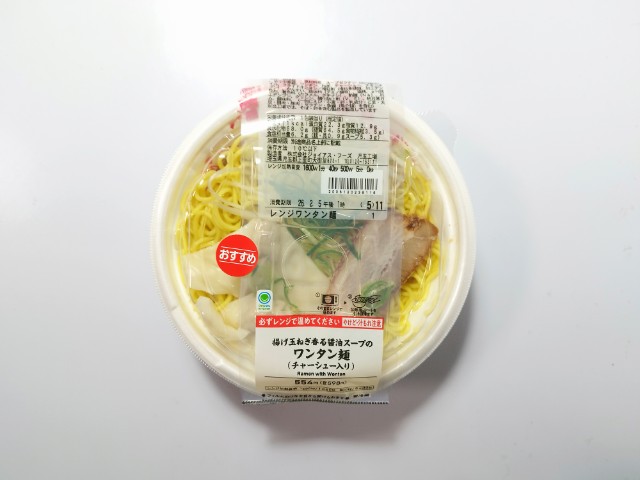 ファミリーマートの今週の新商品「揚げ玉ねぎ香る醤油スープのワンタン麺」を食べてみました。