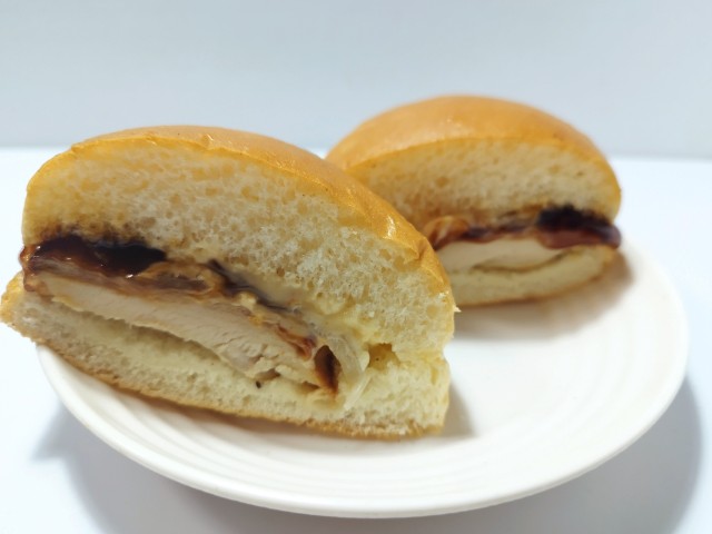 ローストチキンとロースト玉ねぎ、てりやきソースなどを使ったハンバーガーです。以前の購入が2022年8月31日発売だったので、3年以上経っていますが、価格が320円(税込345.60円)から370円(税込399.60円)へと変わっています。そんなてりやきソースのチキンバーガーですが、バンズはふっくらとした食感と歯切れの良さがあって、安定の美味しさです。メインのローストチキンは肉の旨味とほどよい弾力、ジューシーな味わいで食べ応え抜群です。他にもロースト玉ねぎやてりやきソース、一味マヨネーズが一緒に挟まっていて、ロースト玉ねぎの甘味とてりやきソースの甘辛い味わい、一味マヨネーズのピリッとした辛味が味や食感のアクセントになっています。大きさは普通のハンバーガーサイズで、おやつや小腹が空いた時にピッタリです。ぜひてりやきソースのチキンバーガーを食べてみてください。