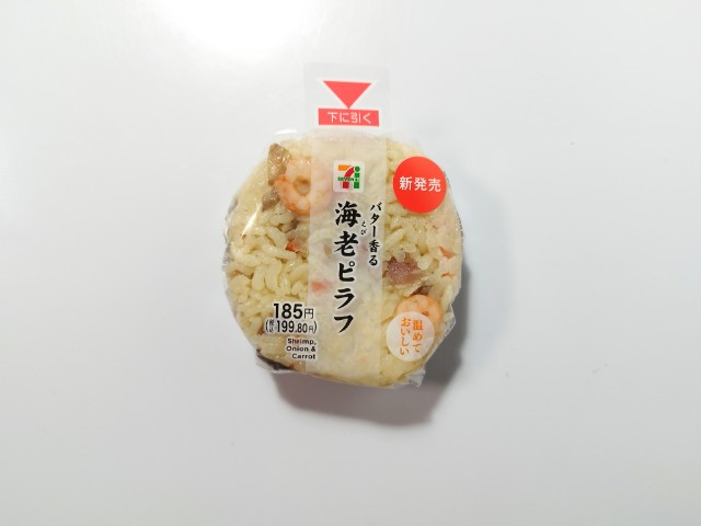 セブンイレブンの今週の新商品「バター香る 海老ピラフおむすび」を食べてみました。