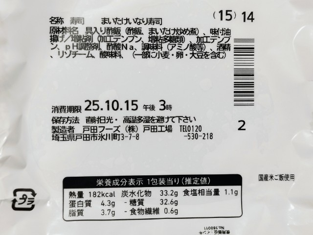 ファミリーマートの商品「まいたけいなり寿司」を食べてみました。