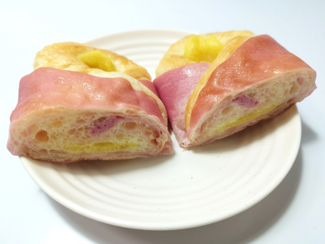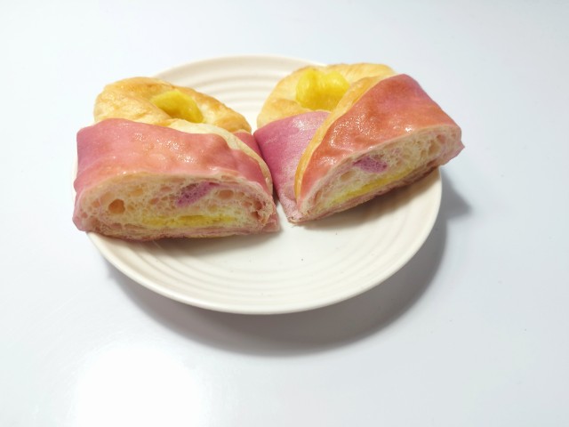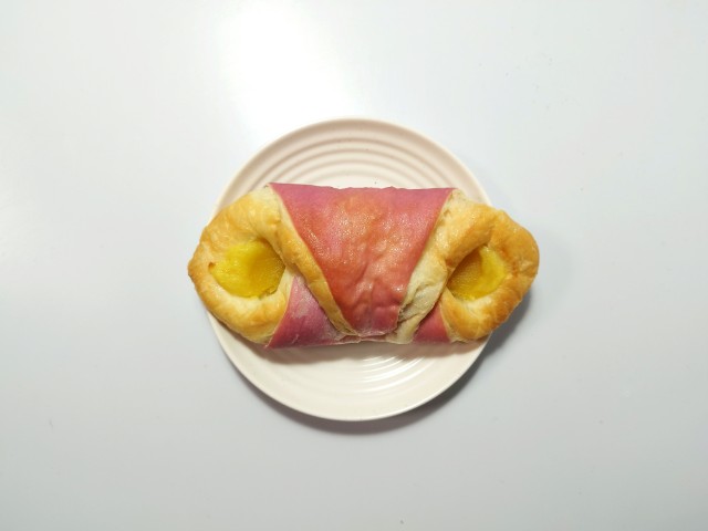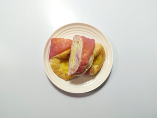 さつまいもを使ったクロワッサンです。以前の購入が2025年1月14日発売だったので、約1年近く経っていますが、価格が138円(税込149円)から144円(税込155円)へと変わっています。昨年に続き、ファミリーマートでは1月13日よりテレビ埼玉とのコラボレーション企画第2弾を開催していて、今回の商品も対象商品の一つになっています。そんなおいものクロワッサンですが、さつまいもをイメージした紫色のパン生地しっとりとした食感小麦の風味があって、どんどんと食べ進められる美味しさです。中のさつまいもあん埼玉県産富の川越いもを使っていて、なめらかな食感さつまいもの甘味をしっかりと感じられます。大きさは普通の菓子パンサイズくらいで、おやつ小腹が空いた時にピッタリです。ぜひおいものクロワッサンを食べてみてください。