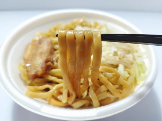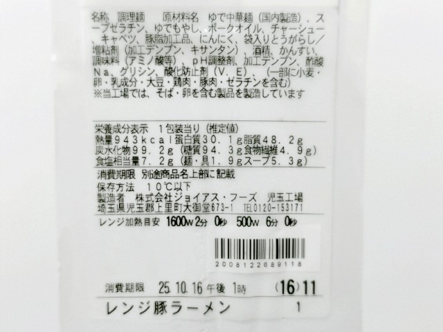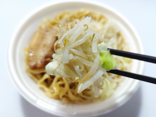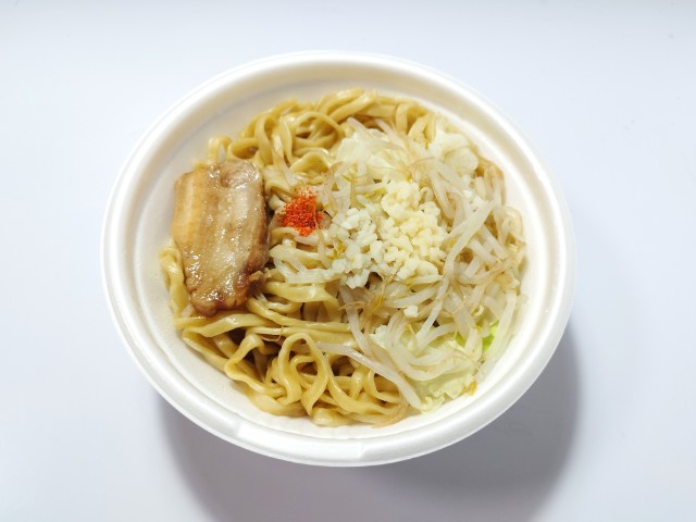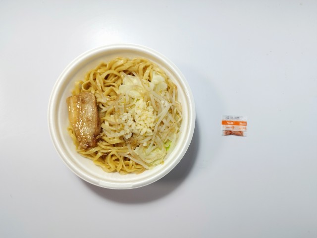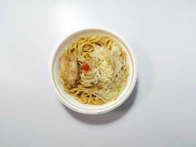 ラーメン荘歴史を刻め監修の豚ラーメンです。以前の購入が2025年9月2日発売なので約1ヶ月近く経っていますが、価格は変わっていません。そんな豚ラーメンですが、豚骨醤油の旨味とラードのこってり感、にんにくの味わいがあって、がっつりと美味しいラーメンになっています。麺はほどよい弾力と小麦の風味があって、食べ応え抜群です。具材にはチャーシューやもやし、刻みにんにくなどがのっていて、それぞれの味や食感を楽しめます。また、にんにくがしっかりと効いているので、食後に人と会う場合は注意が必要だと思います。内容量は1食分にちょうどよく、お腹も満たされます。ぜひ豚ラーメンを食べてみて下さい。